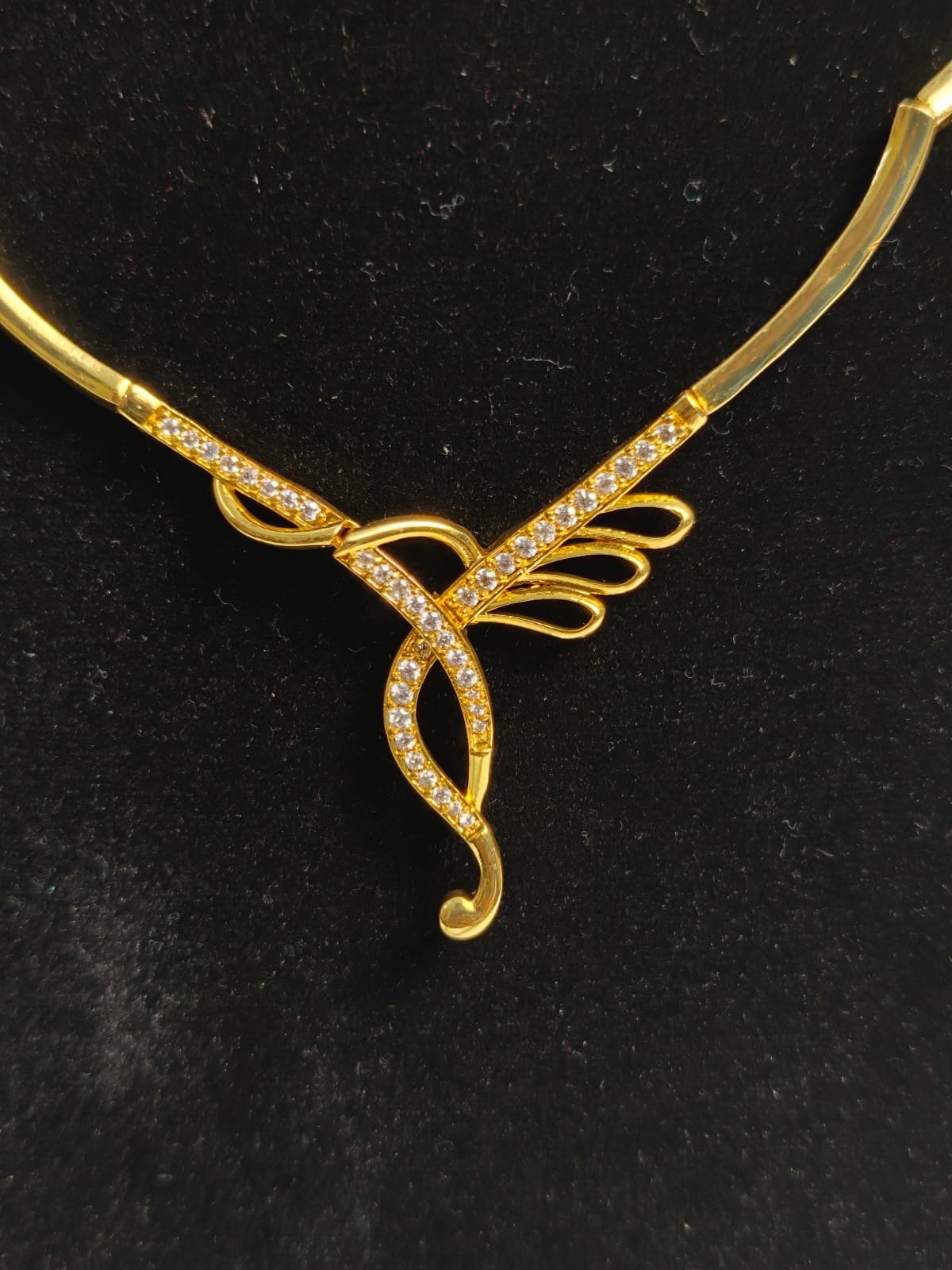 “Glam short necklace with a sparkling accent — small in length, big on impact.”
