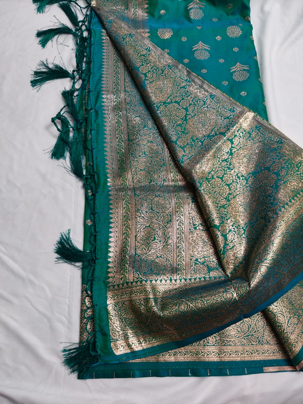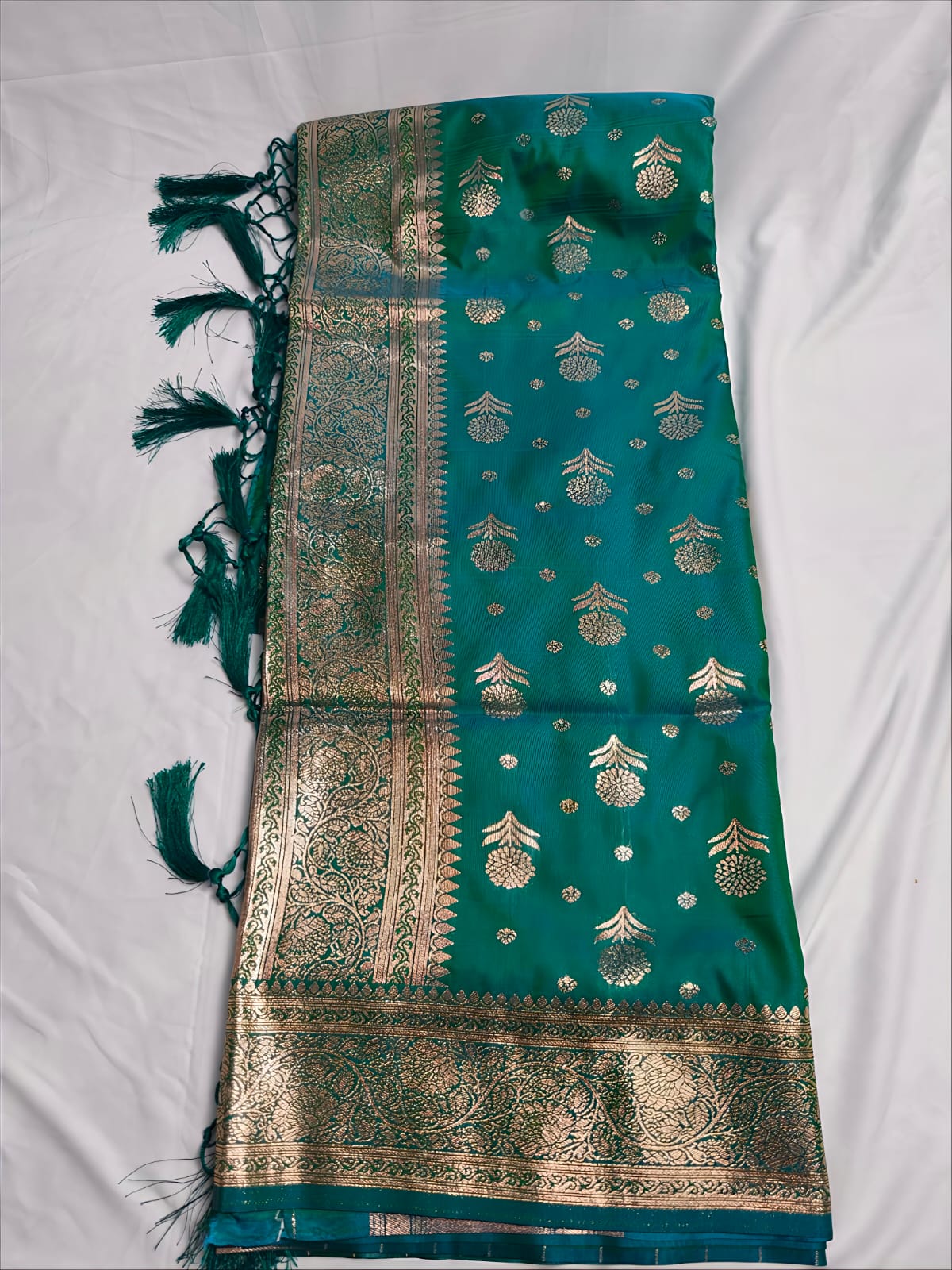 Perfect for weddings and festive occasions, offering a rich drape and classic Indian charm.