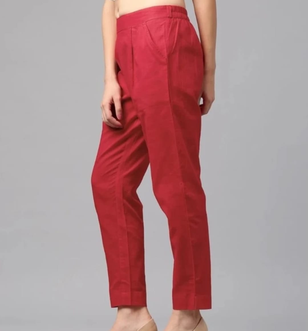 This straight cotton pant features a simple design and smooth finish, making it ideal for casual outings, work, or ethnic pairing.
