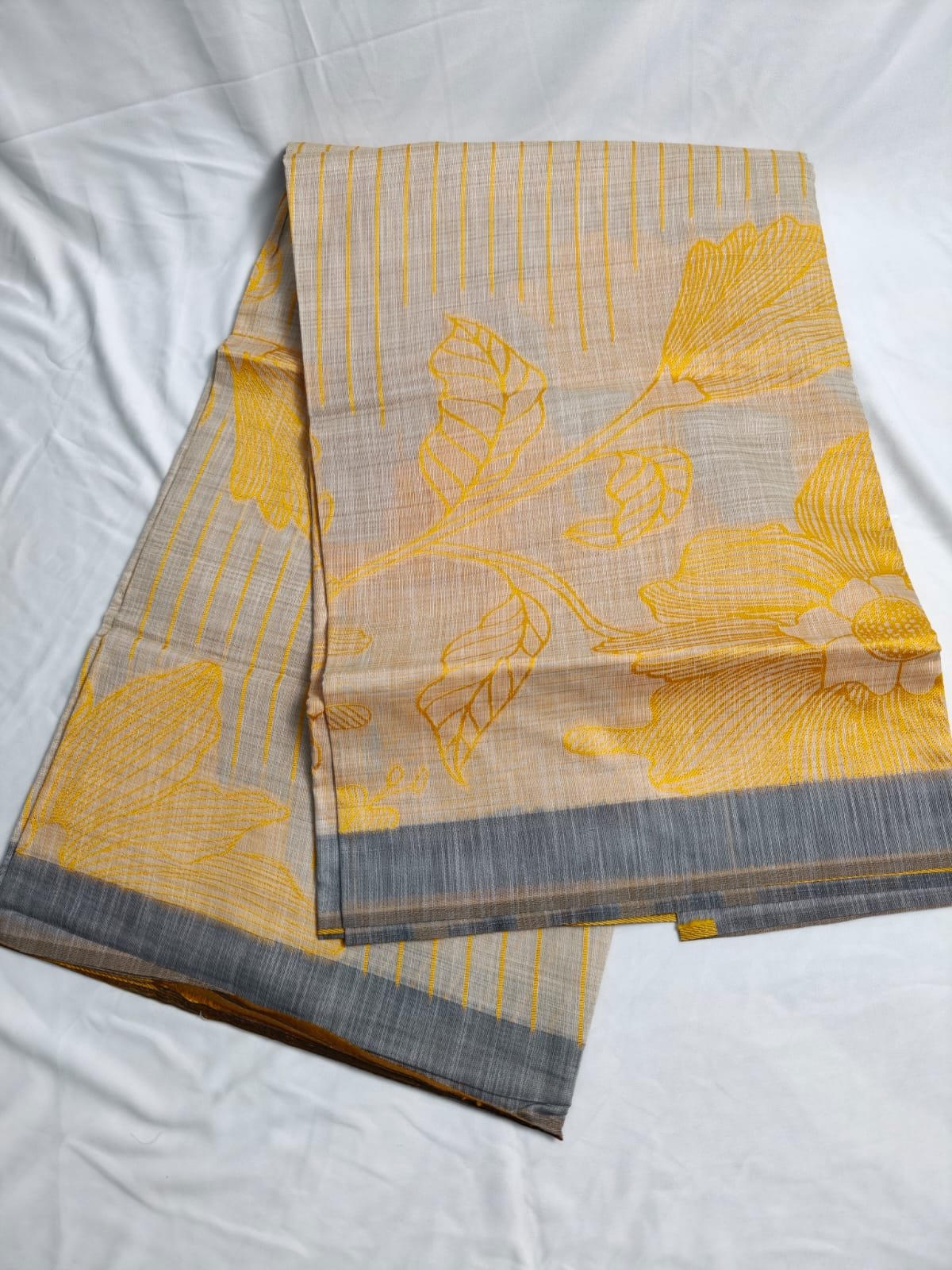 Stay stylish and comfortable with this trendy Muslin saree, designed for effortless elegance.