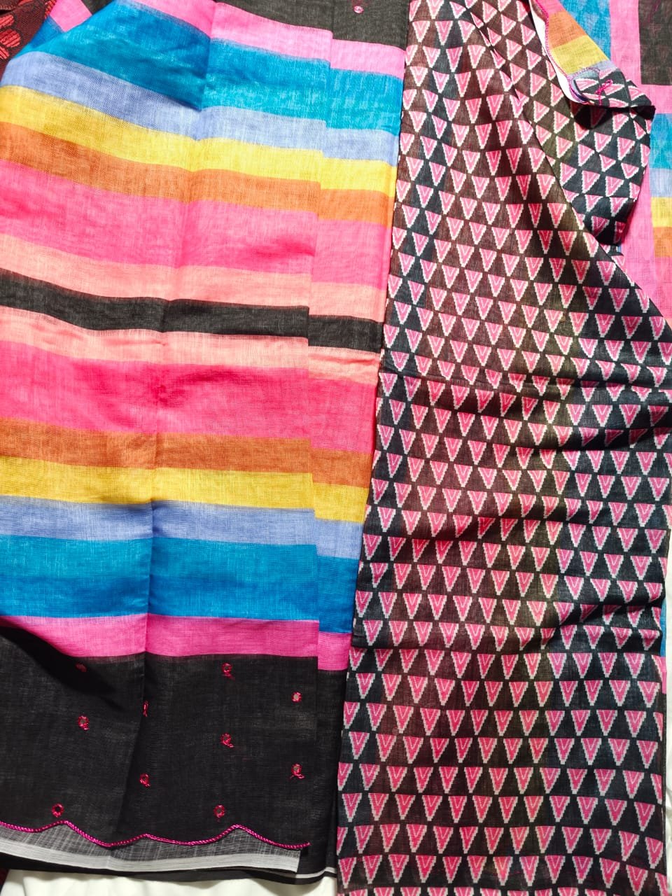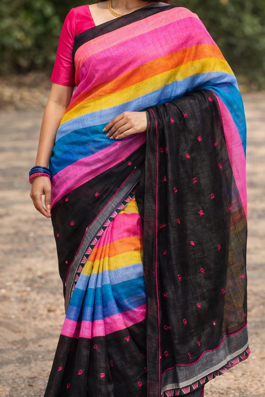 Lightweight and breathable cotton saree featuring a beautiful blend of vibrant colours. Perfect for daily wear, office use, and casual outings with all-day comfort and effortless style.