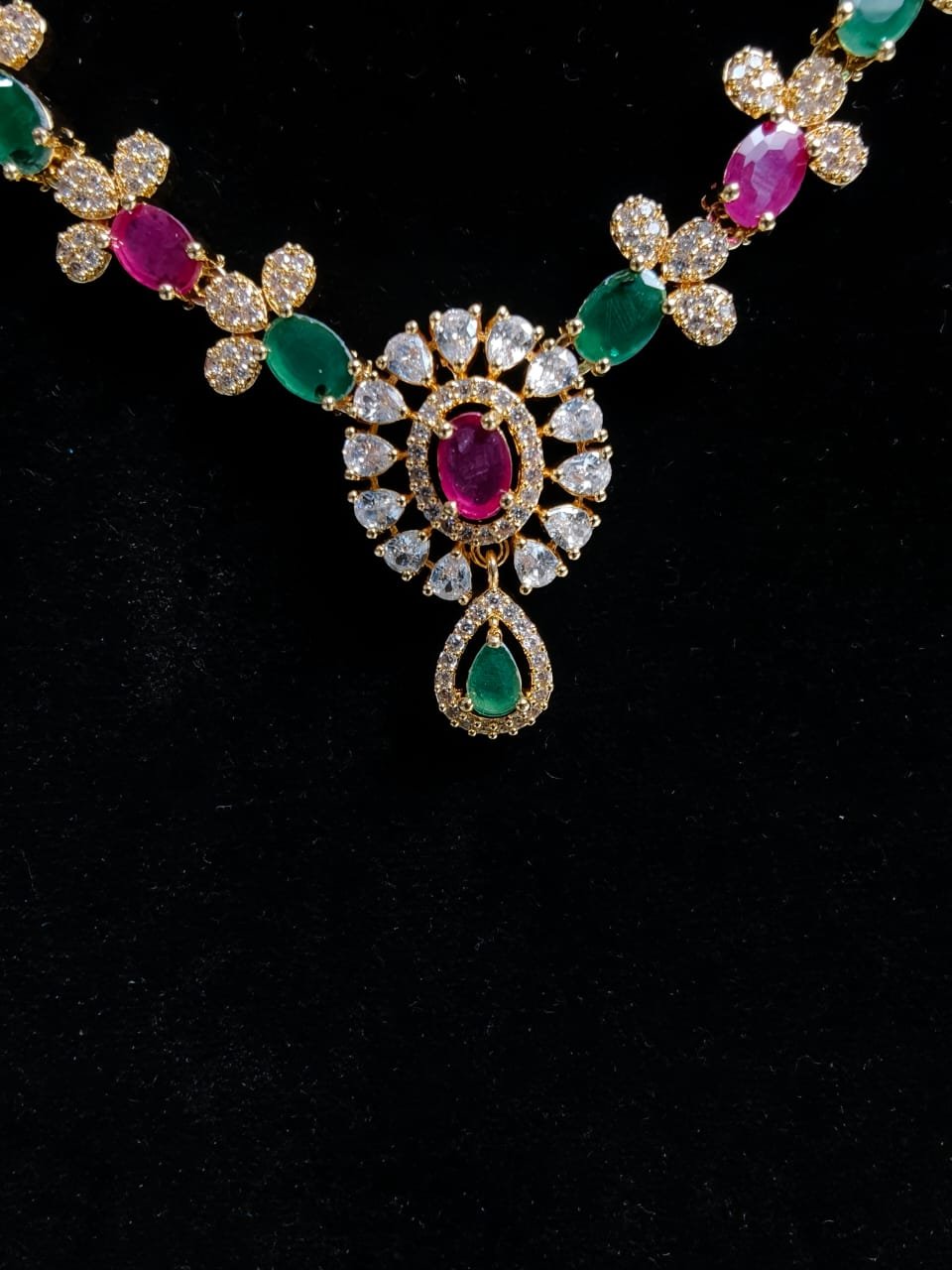 Gracefully crafted AD necklace set with brilliant sparkle for a classy look.