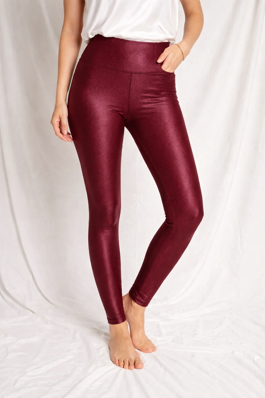 Sleek and stylish leggings with a subtle shimmer finish, perfect for parties and casual outings.