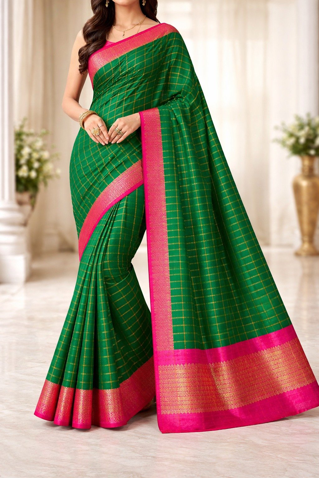 Elevate your everyday style with this trendy checked cotton saree, crafted from soft and breathable cotton fabric for all-day comfort.