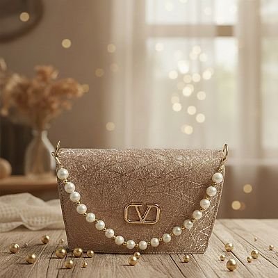 Elegant textured finish with premium gold-tone chain accent